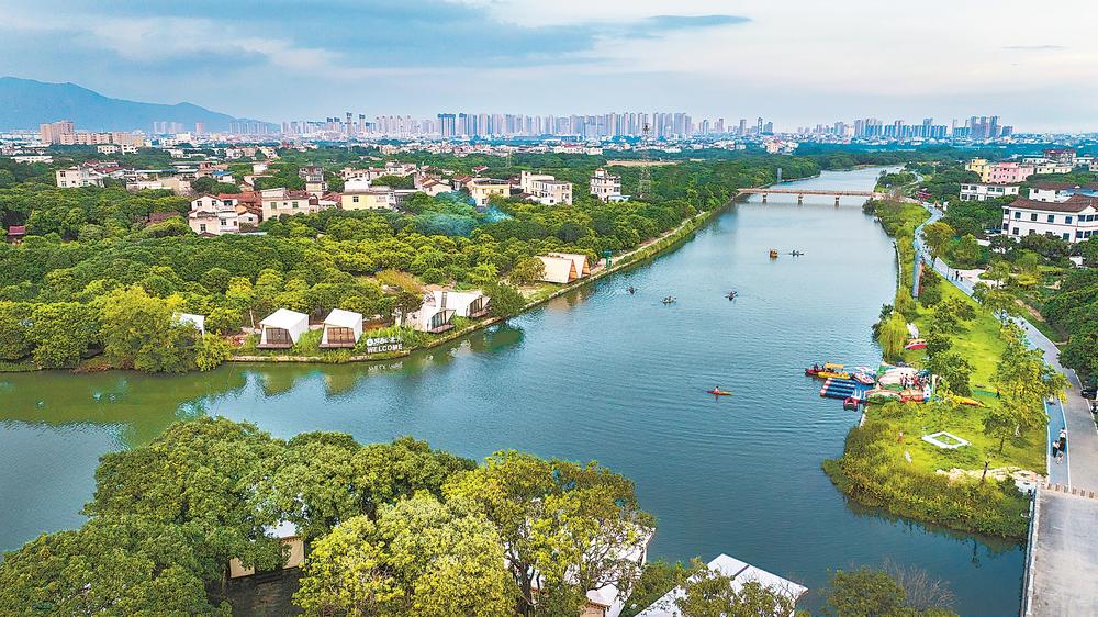 日前,莆田市荔城区西天尾镇北大村,游客在木兰溪支流延寿溪上划皮划艇。北大村正在打造集露营基地、状元文化、垂钓闲趣、围炉雅集、皮划艇经济、潮玩互动等于一体的新型乡村文旅示范点。