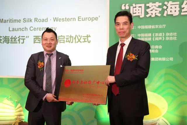 福建省农业厅黄华康厅长向英国中华总商会授牌设立“闽茶文化推广中心”