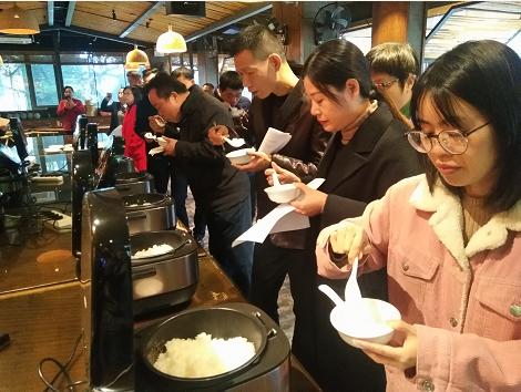 鉴评活动上,共有11个优质原生态稻花鱼米样品提供品尝,在专家组指导下,样品米用“武夷山水”品牌矿泉水制备成了米饭。随后,现场全体嘉宾进行食味鉴评,通过观察米饭气味、外观、米饭适口性及滋味,进行综合评断,最终泰丰优656、野香优676、迷你银占、华优玉禾、玉针香等5种优质稻花鱼米获得了前五名。