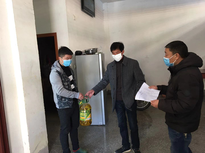温馨劝导。自开展防疫工作以来,村“两委”入户不间断入户进行细致、温馨的劝导,劝导2户(60桌)婚宴酒席延期举办。对于不理解的群众,村干部反复耐心劝说,把问题的严重性和关键点讲明白,说清楚,争取得到群众的支持。为进一步关心关爱湖北返乡人员,驻村第一书记、村支部书记直接对接湖北返乡人员,监督其做好防护措施,实行每日一访,密切跟踪身体及生活动态,并为每户送上一袋米一桶油,让他们居家隔离也暖心。