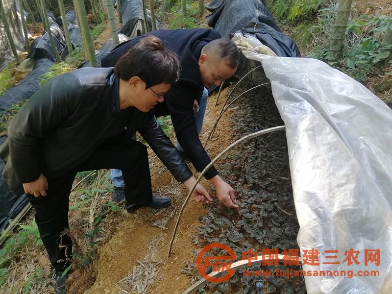 驻村第一书记吴建展(右)与村干部打造的金线莲基地长势良好