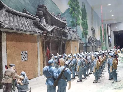 长汀县中复村拍摄的红军长征出发动员会微型雕塑。新华社 秦宏 摄