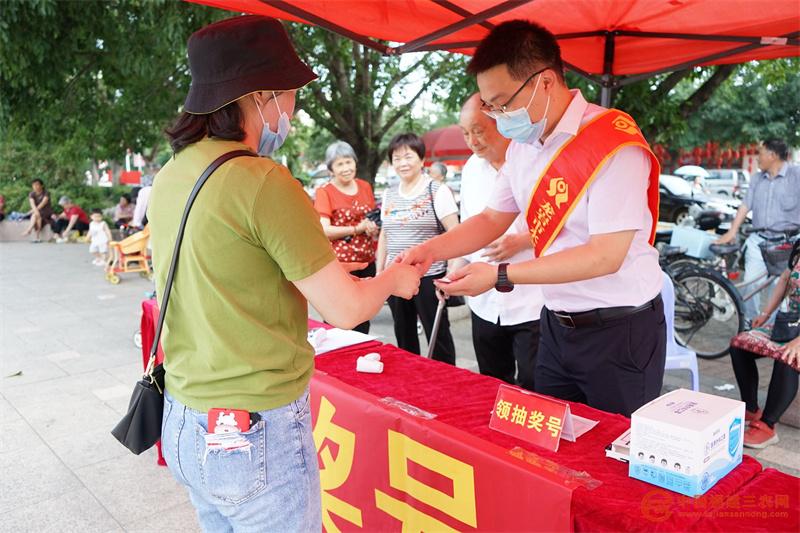 金融助理卢耿明为参加整村授信启动会的群众解答问题,宣传整村授信金融知识