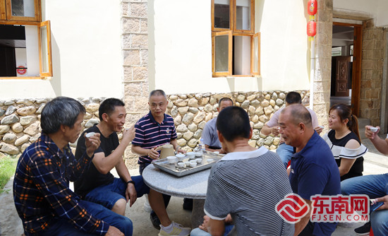 安溪县农民讲师团团长张顺儒和在泡茶桌和群众拉家常。吴明娜 李淑雅 摄