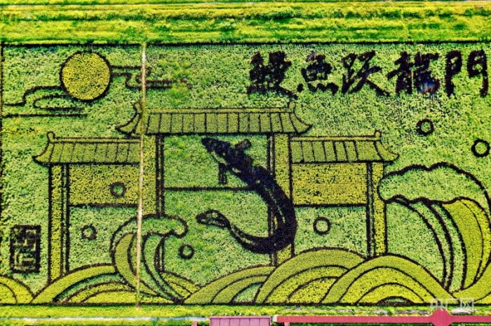 连日来,福建省福州市福清台湾农民创业园三华园区,占地12亩的艺术稻田进入最佳观赏期,一幅生动的“鳗鱼跃龙门”图案成了当地乡村旅游亮点。