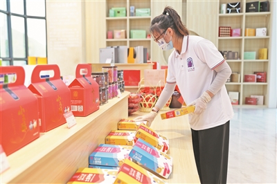 周宁有鲤公司工作人员在上架土豆月饼 魏知秋 摄