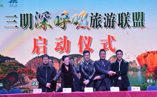 2月10日,“三明深呼吸旅游联盟”在泰宁县启动,三明市政协副主席、旅游局长陈欣等领导出席了启动仪式并共同启动“三明深呼吸旅游联盟”按钮,随着水晶球的点亮转动,标志着“三明深呼吸旅游联盟”正式启动。